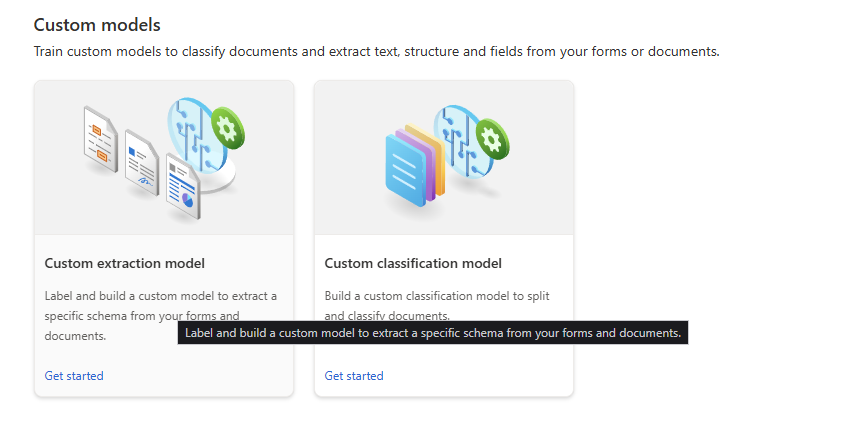 To do this I first created an Azure resource for the document intelligence. After that I went to the Azure AI Document Intelligence Studio (https://documentintelligence.ai.azure.com/studio/). Here you can use pre-build models for some common types of documents but I went for the “Custom extraction model”.
